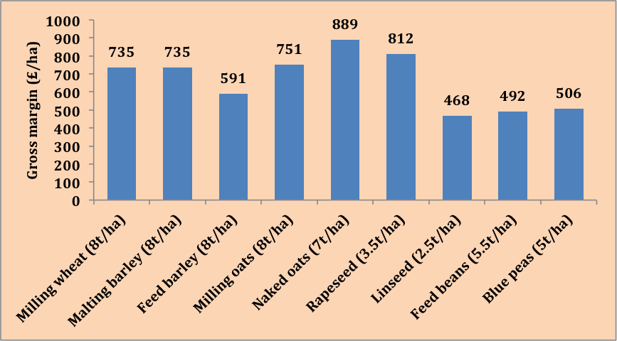 Based on current crop values and input costs, the budgets show naked oats continue to offer the best margin prospects, followed by spring rape, milling oats, milling wheat and malting barley. Feed barley is again likely to generate the poorest spring cereal margins, although significantly ahead of beans, peas or linseed (see Figure1).