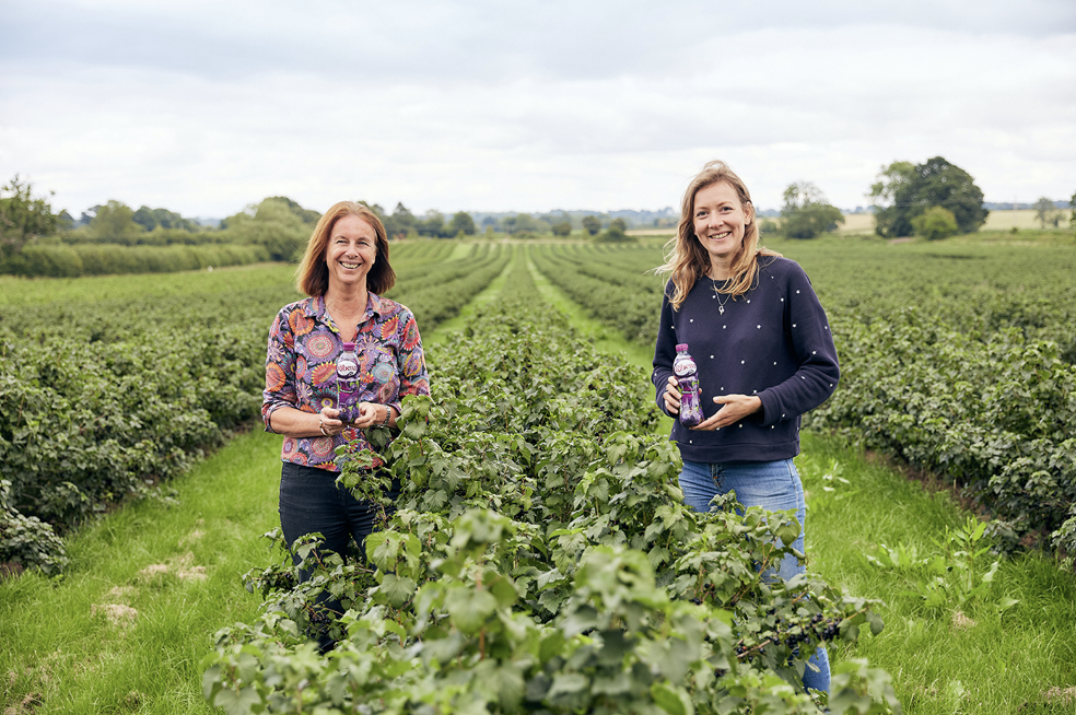 Chair of the Blackcurrant Foundation, Jo Hilditch (left), with one of the blackcurrent growers, Rosie Begg (right), pictured with Ribena.