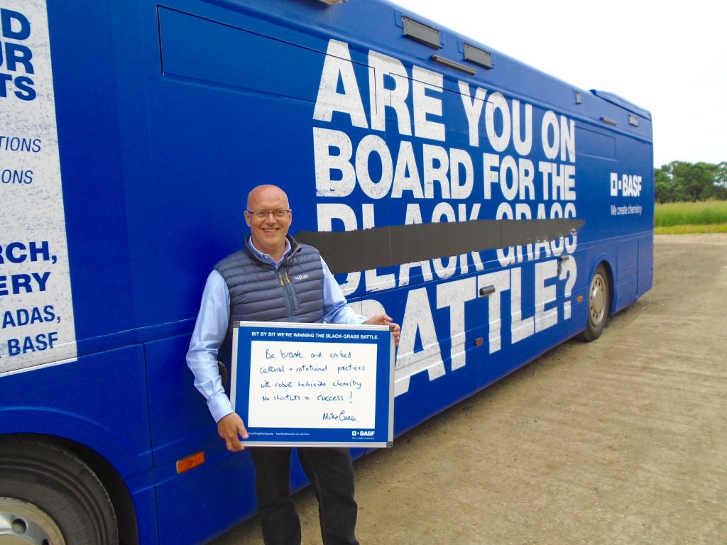 “They can either leave a black-grass beating tip on the Battle Bus or sign up to the BASF Black-grass Beaters campaign, which can be found at basfrealresults.co.uk/awc/black-grass and leave a suggestion there.”