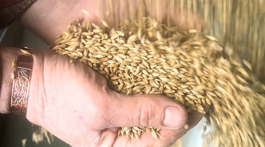 Bere is an ancient form of barley, with a unique appearance and taste, and has been grown and milled in Orkney for over 300 years. It is a quick-growing but poor-yielding crop that J&S Hay sows in mid-April and hopes to harvest in the second half of August. From the 150 acres grown, the yield is between 200-250t.