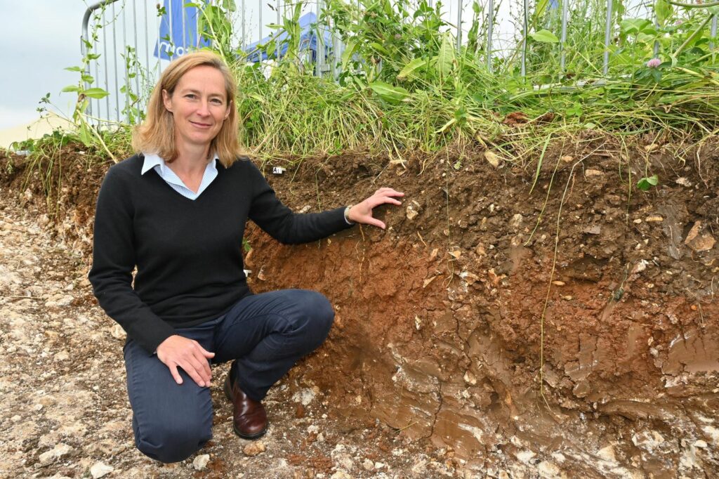 Belinda Bailey, Syngenta sustainable farming manager, demonstrates green cover for soil enhancement.