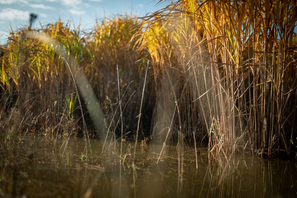 Miscanthus growing on waterlogged land.