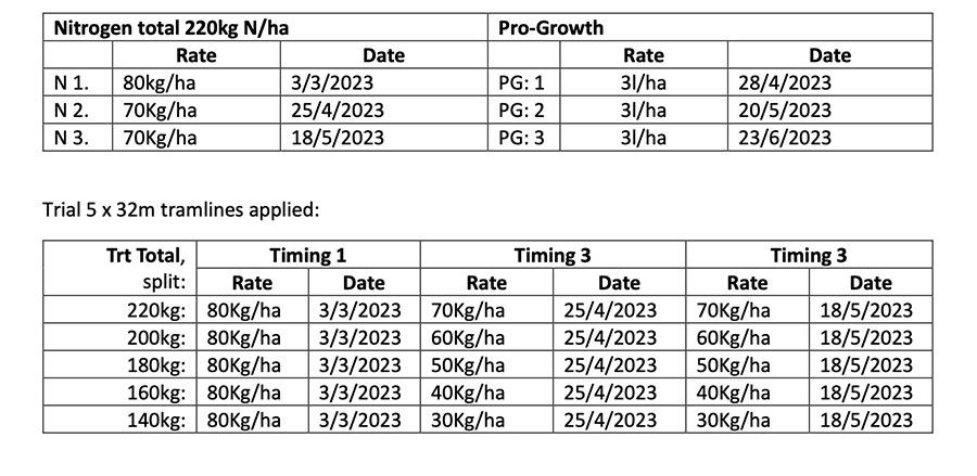 In both trials Pro-Growth was applied three times at a dose rate of 3 litres/ha coinciding with T1, T2 and T3 sprays.