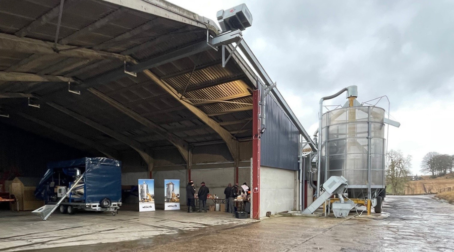 Demos showed how Mr Duncan has successfully deployed a Mecmar D 20 T mobile drier fitted with an automated control panel working alongside a Skandia Elevator AB intake and a chain and flight conveyor.