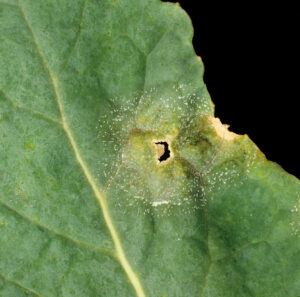 ADAS is partnering Bayer with the SpotCheck service, and ADAS plant pathologist Philip Walker notes that the disease is very difficult to spot in the early stages of infection. “In its early phase, LLS expresses itself as small white dots scattered across the top or underside of the leaf, where the fungus is erupting from the leaf surface. They can look like tiny grains of sugar but without a hand lens or microscope they are difficult to spot.”