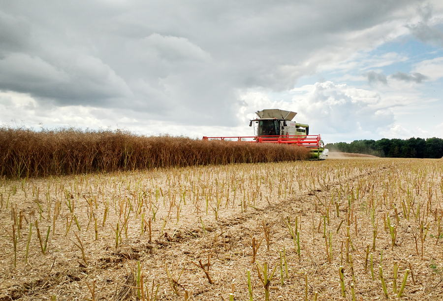 “The crop combined exceptionally well for such a thick crop of rape with tree trunk type stems that were up to 2 inches wide. For a conventional variety, the seed looked exceptionally bold,” he says.