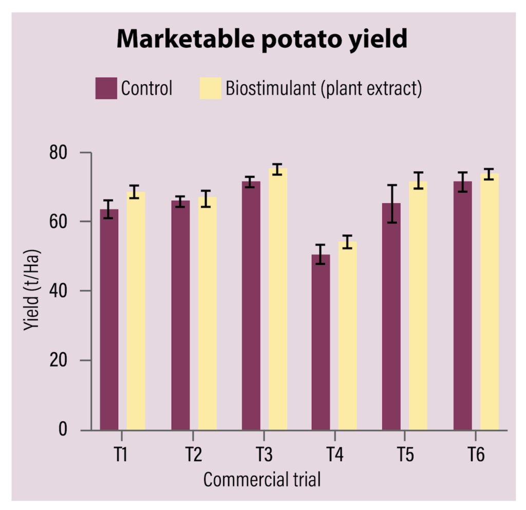 A review of data from multiple field trials across the world has demonstrated that crop responses to biostimulant application depended on the biostimulant type, the application method, crop type, soil properties and climate. In general, the greatest yield responses were observed after the application of biostimulants derived from plant extracts and in crops growing under stress. The analysis also showed that biostimulants induced the highest yield increases in vegetable crops. Recent experimental and commercial trials in the UK and Europe have demonstrated the potential for complex biostimulants to improve potato production.