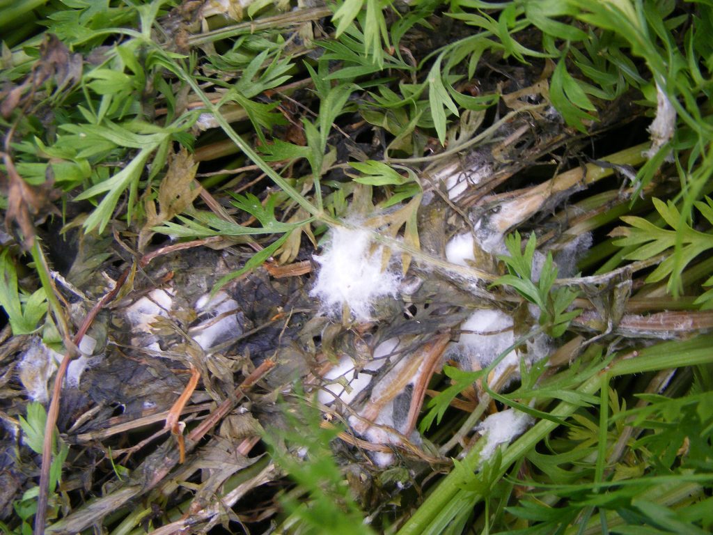 She explains that sclerotia germinate when the soil is moist and soil temperatures reach approximately 8–10°C. They release airborne spores which infect carrot crops. “We need to wait to see what the weather does in July and August to gauge the level of risk this year. If soils are moist, germination starts before closure of canopy. Therefore growers should start their fungicide application early, before the canopy closes over, which is usually between mid-June to late July. Once Sclerotinia is established in the crop, it is almost impossible to get on top of it.