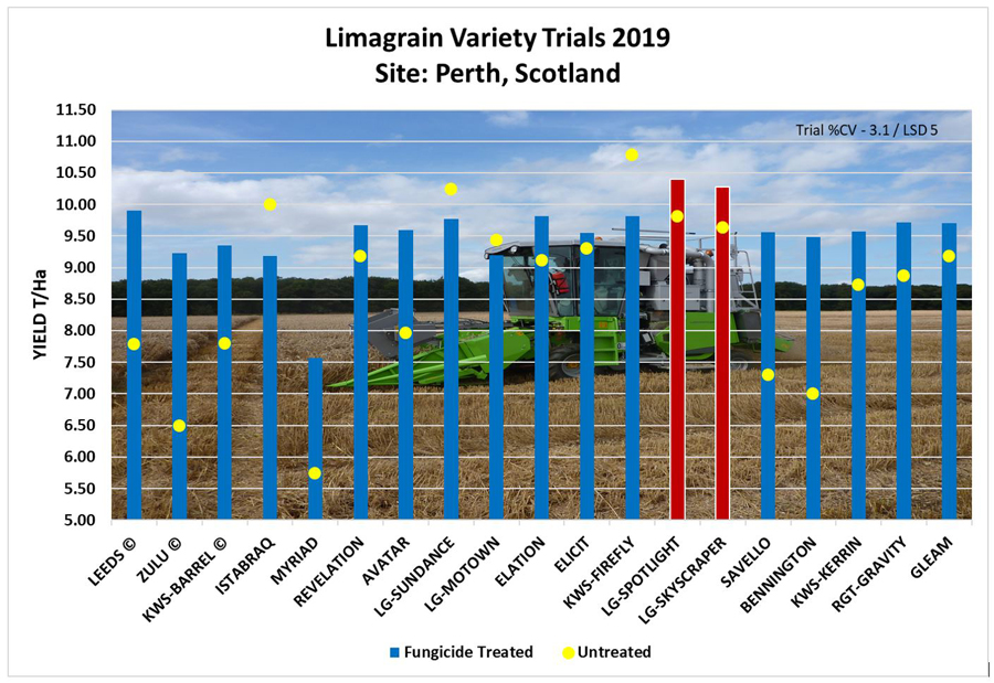 “Whilst there was significant pressure from septoria and yellow rust, both LG Skyscraper and LG Spotlight have managed to withstand this pressure, which can be seen from the differences in treated and untreated ratings.”