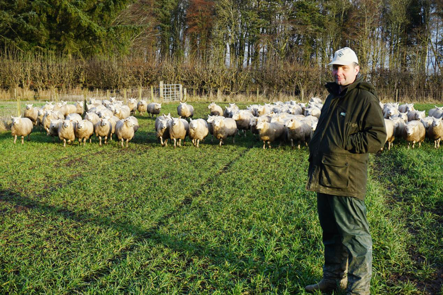 Farmer Iain Wilkinson with lambs grazing this year’s winter wheat.