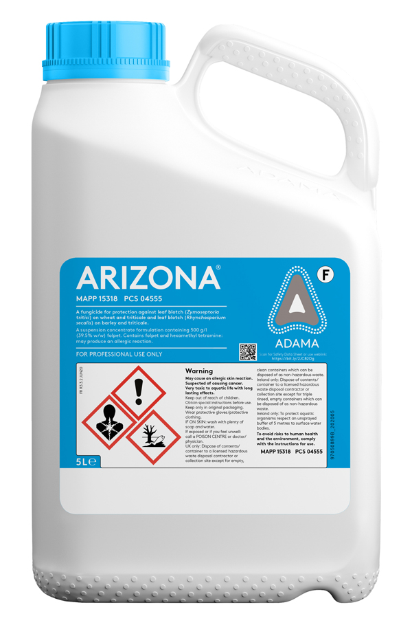 As a multi-site inhibitor, Arizona (500g/l folpet) is the ideal addition to cereal fungicide programmes this spring thanks to its ability to boost yields by providing cost effective efficacy against septoria, rhynchosporium and ramularia.