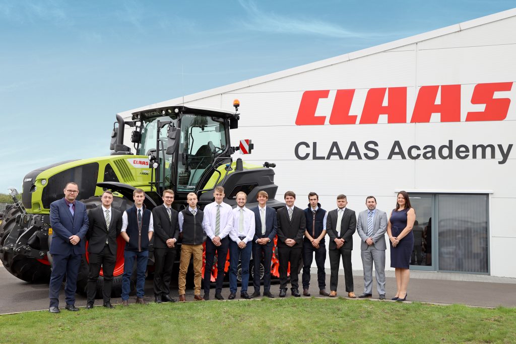 Pictured with Reaseheath College staff Scott Wiffen (far left), Paul Spearitt (second from right) and Sharon Yates (far right) are some of the 2019 Claas apprenticeship scheme graduates (l-r) Dean Jarvis, Toby Gardiner, Tobias Weeks Baker, Tobias Peissel, James Walsh, Jack Brinkley, Robbie Spurgeon, Nick Corcoran, Robert Wheeler and Benjamin Harper