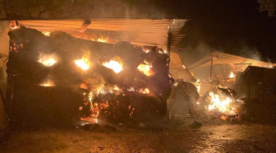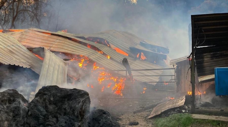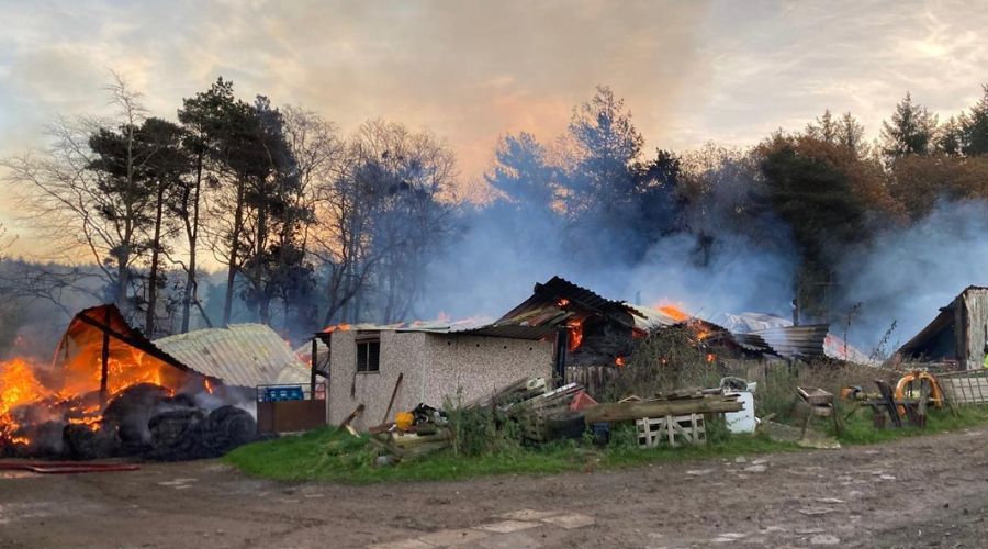 Despite the best efforts from five fire crews, the blaze resulted in the loss of a substantial number of livestock, around 600 bales of hay, two barn sheds and equipment, including a tractor and digger.