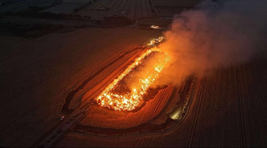12,000 straw bales, which equates to around 6,500 tonnes of straw, have caught fire.