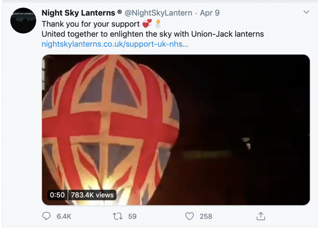 Night Sky Lanterns encouraged people to light a Union Jack sky lantern to support the NHS.
