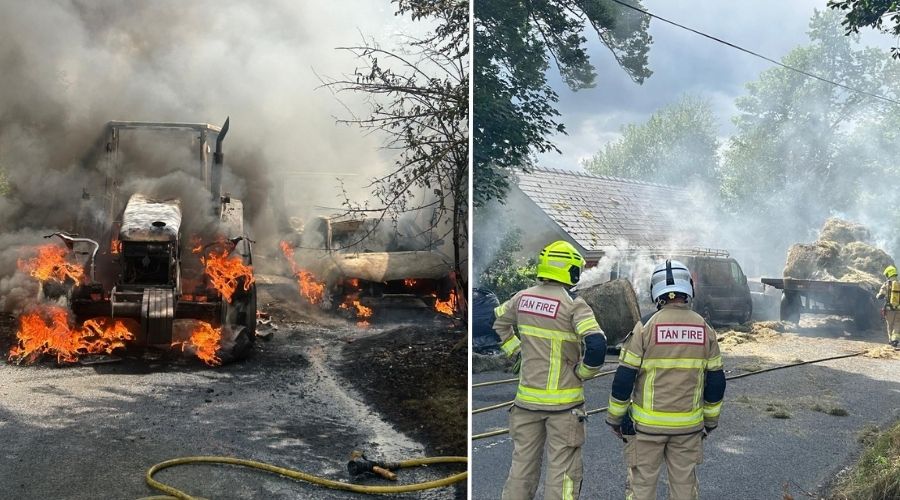 The incident on a farm in Llangeler, near Llandysul, involved one tractor, however, the fire had also spread to bales, two vehicles and a nearby property.