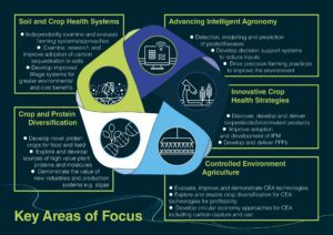 A great deal has changed since 2016 such that in 2022-23 the order book for CHAP exceeded £1.8 million, with over £6 million for the sector overall. This equated to 57 projects at the peak of business activities, funded both through government and commercial organisations with more recent successes on top. These projects generally involve project consortia made up of SMEs, academic and corporate organisations as well as R&D institutes. Projects tend to fall into one of five key areas of focus; soil and crop health systems, crop and protein diversification, advancing intelligent agronomy, innovative crop health strategies and controlled environment agriculture.