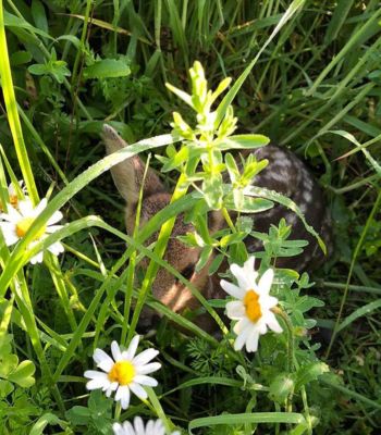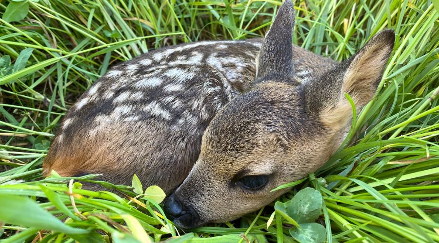 The fawns remain completely still while awaiting their mothers’ return. They do not get scared off by noise, which makes them vulnerable to being harmed by farm machinery.