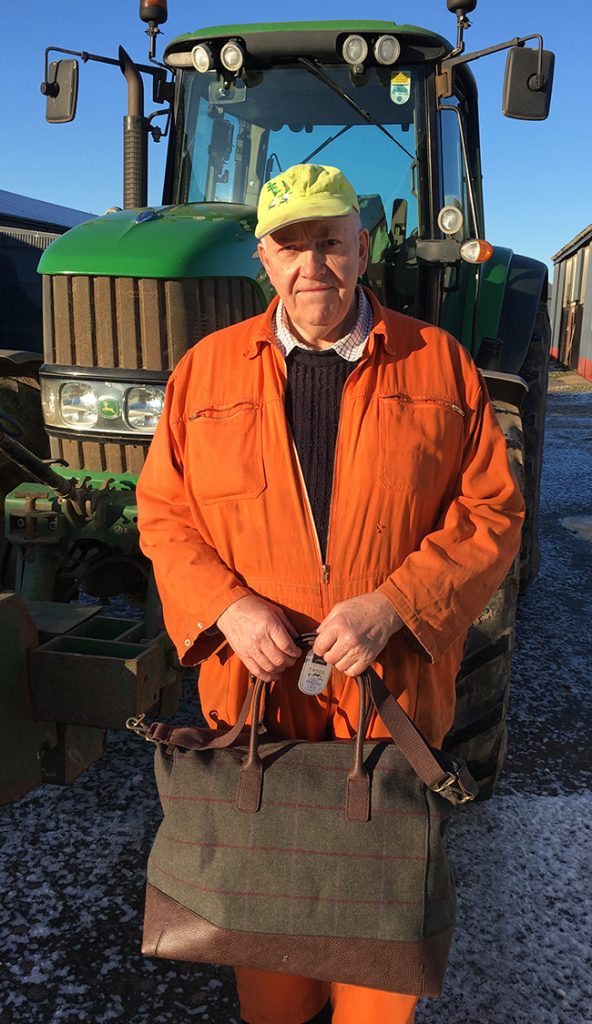 Stuart Smith, Lincs pictured with his Joules tweed weekend bag kindly donated by Ernest Doe & Sons.