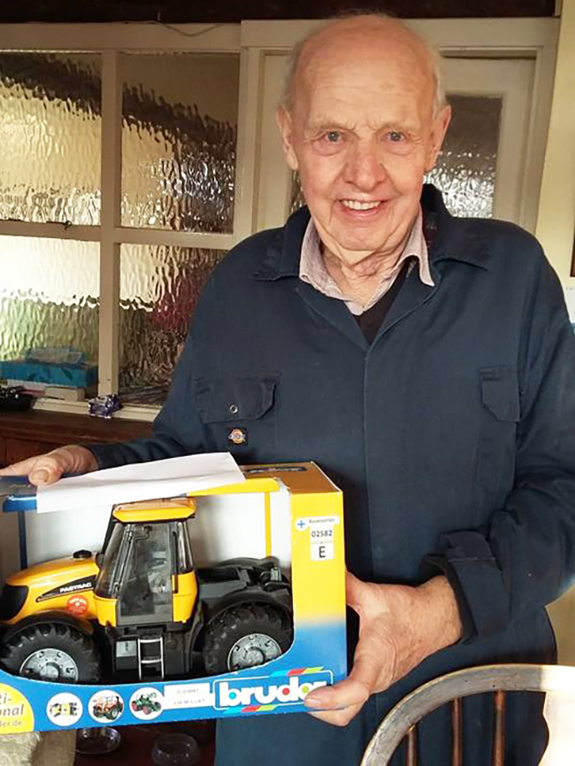 Bob Bagley, Midlands, pictured with his JCB model Fastrac kindly donated by Oliver Landpower. Bob told Farmers Guide that his great Grandchildren Harry and Alfie will enjoy planning with the toy.