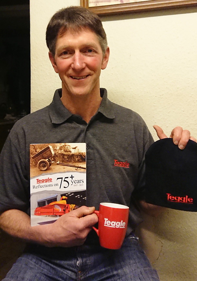 Gary Bagg, Somerset, pictured with his book, hat, mug and wearing his polo shirt, kindly donated by Teagle Macinery Ltd.
