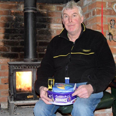 Paul Tooley, Suffolk, pictured with his tape measure, chocs and sundries kindly donated by AS Communications (UK) Ltd.