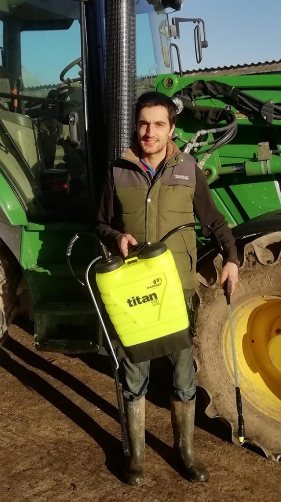 Sam Northery, Devon, pictured with his knapsack sprayer kindly donated by GM-R Sprayers.