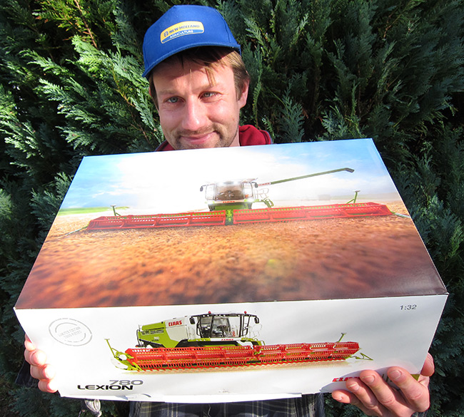 Joshua McDowell from Essex pictured with his Claas model Lexion 780 combine kindly donated by Claas UK Ltd.