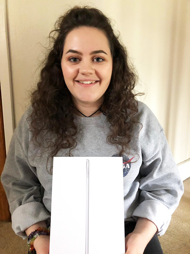 Amber Evans, Berkshire, pictured with her iPad donated by Farmers Guide.