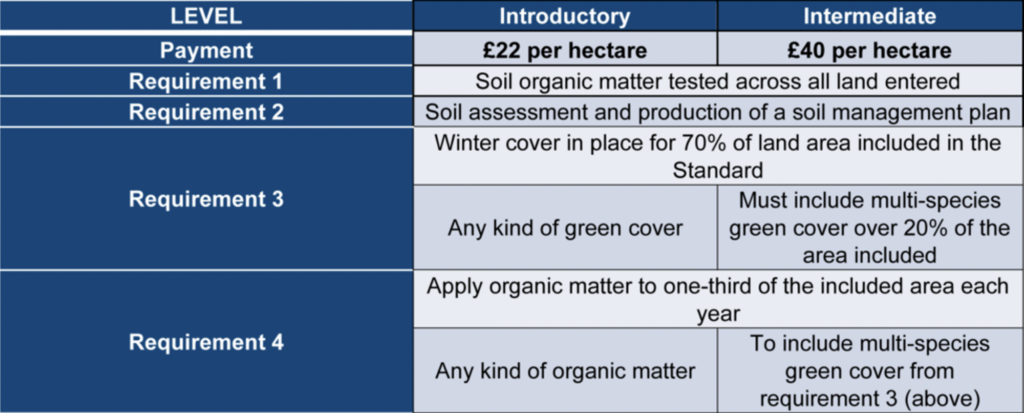 To be eligible for this standard, each land parcel entered must be cultivated arable land. This can also include temporary grassland, i.e. land that has been in grass or other herbaceous forage for less than five years. Alternatively, temporary grass can be entered into the Improved Grassland Soils Standard. If the temporary grass will have been down for more than five years at some point during the three-year SFI scheme, it will need to be entered in the Improved Grassland Soils Standard as it would no longer be considered arable land.