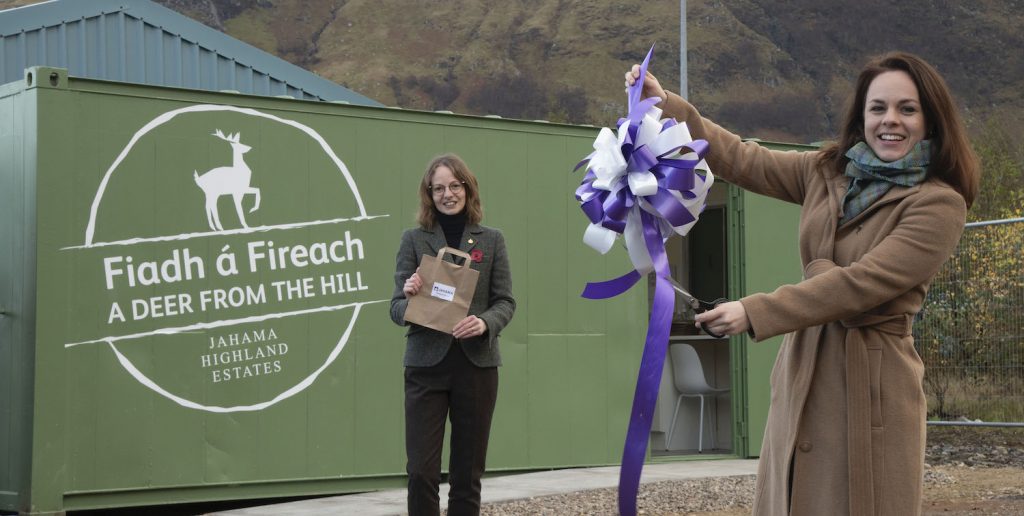 Jahama Highland Estates CEO Julia Stoddart with Kate Forbes MSP at the opening of the new venison retail unit in Fort William. (Image © Iain Ferguson)