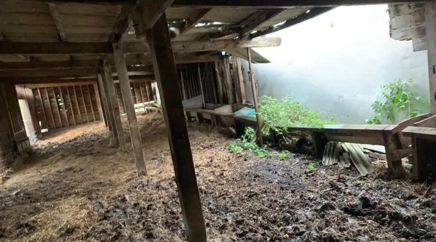 In another shed, the roof was insecurely fixed and was being weighed down with a straw bale in an attempt to prevent it from moving. Roof sheeting was also in poor condition and in a state of disrepair.