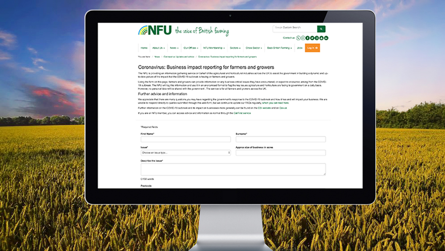 A new online service aimed at capturing farm business issues related to coronavirus has been launched by the NFU.