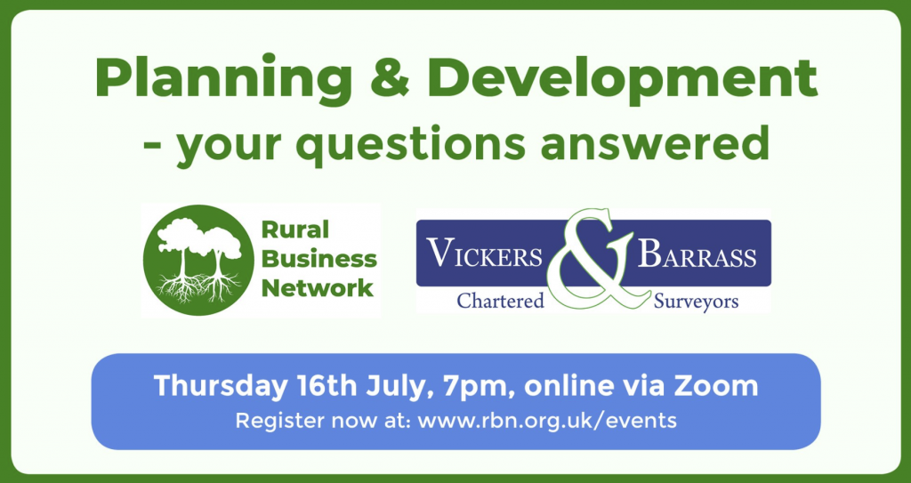 Join the Rural Business Network online on Thursday 16th July at 7pm for their Planning and Development event.