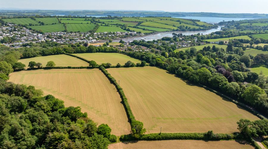 The site, located approximately halfway between the Creekside village of Mylor Bridge and the harbour town of Penryn, comprises a three-bedroom farmhouse with a compact range of traditional farm buildings and approximately 123 acres of productive arable pasture and parkland within a mile of both Mylor Bridge and Penryn.