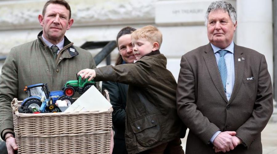 This symbolic gesture, which represents a farm and a future generation that could be lost, was delivered by NFU members Hazel and Tom Church, their five-year-old son Bertie, together with Hazel’s father 66-year-old Martin Towler, who run a 210-acre livestock farm and tenant a further 400 acres.
