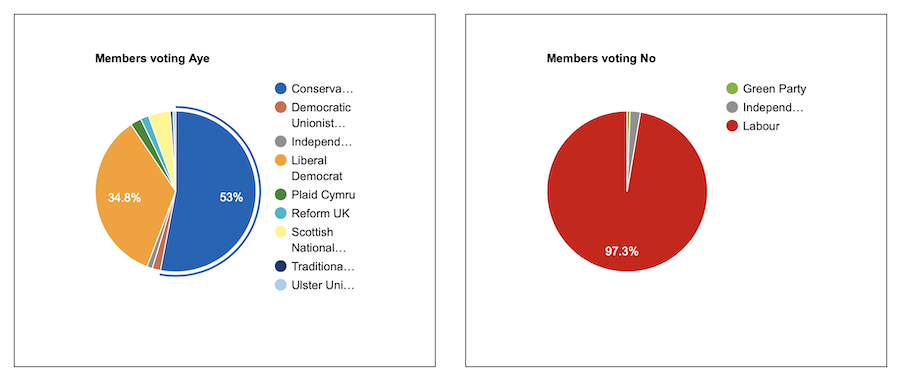 Meanwhile 96 Conservatives voted in favour, along with MPs from a number of other parties, including Liberal Democrats (63), Reform UK (3) and SNP (8).