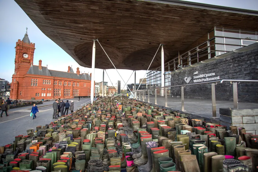Each of the 5,500 wellingtons outside the Senedd building represents an agricultural job that is projected to be lost based on 100% take up of the scheme – as based on figures from Welsh Government’s own impact assessment.