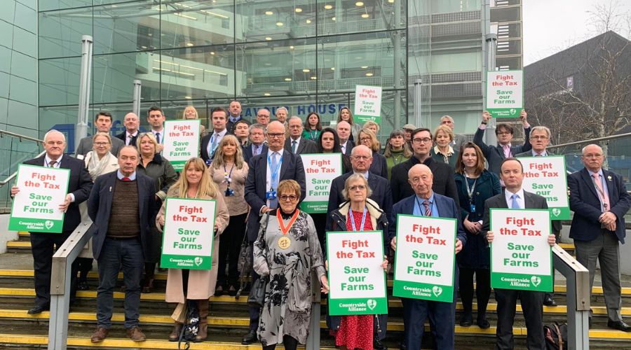 Conservative councillors, farmers, and campaigners from the Countryside Alliance and the National Farmers Union (NFU), gathered on the steps of Endeavour House in protest, calling for an immediate reversal of the policy.