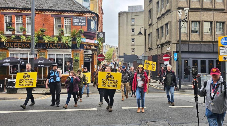 Protesters were carrying signs with phrases such as ‘No farmers, No food, No future’.
