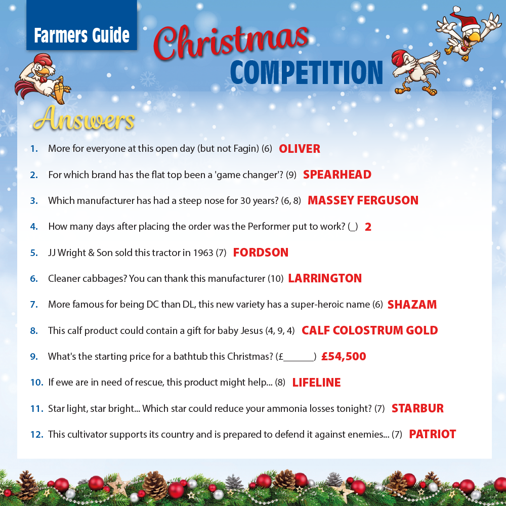 Well done to everyone who submitted their answers to the Farmers Guide Christmas competition!