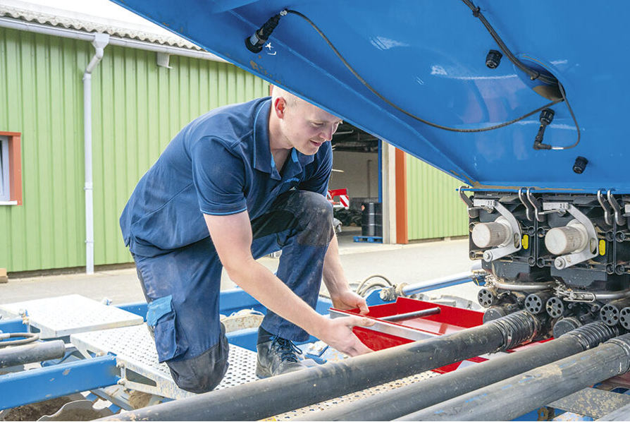 Four distribution heads positioned directly above the coulter bar ensure superior transverse distribution.