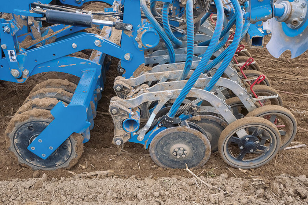 The Solitair DT is equipped with the maintenance-free OptiDisc coulter bar. This bar boasts parallelogram-controlled double disc coulters and trailing depth control rollers.