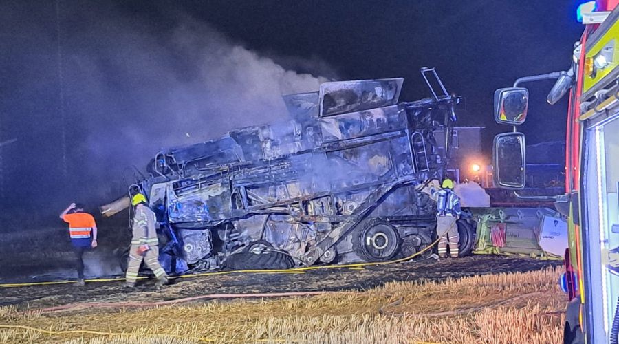 combine harvester on fire