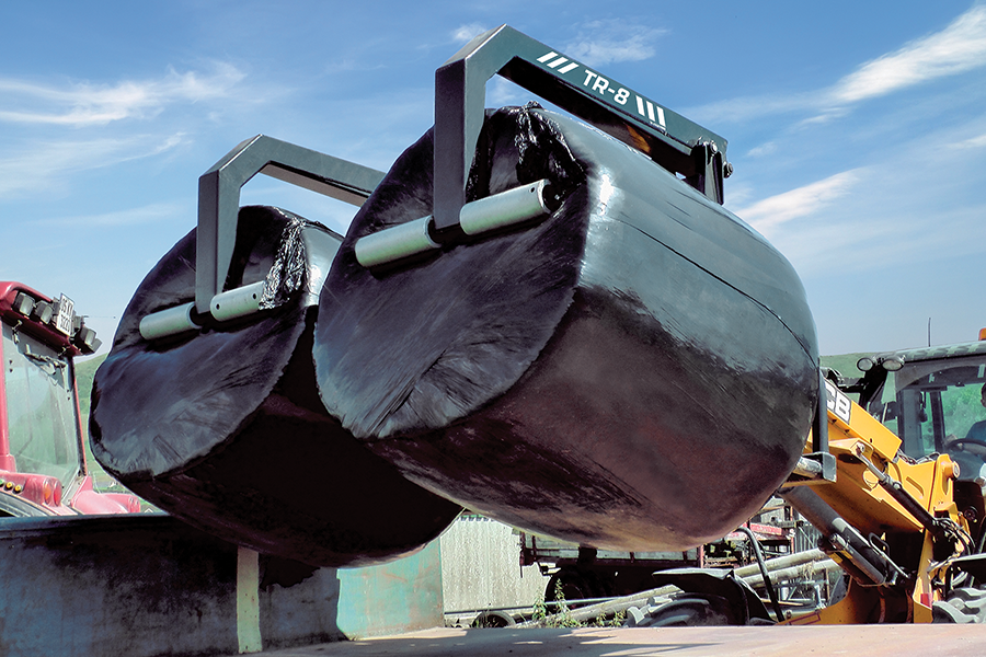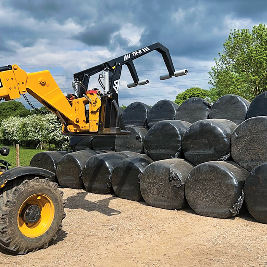 Having proved highly popular in Ireland, the range officially became available UK-wide at LAMMA 2023. It consists of three models: The TR-3 single bale handler for tractor loaders, the TR-4 for loading shovels and telehandlers, and the flagship TR-8 machine, which is a double bale handler.