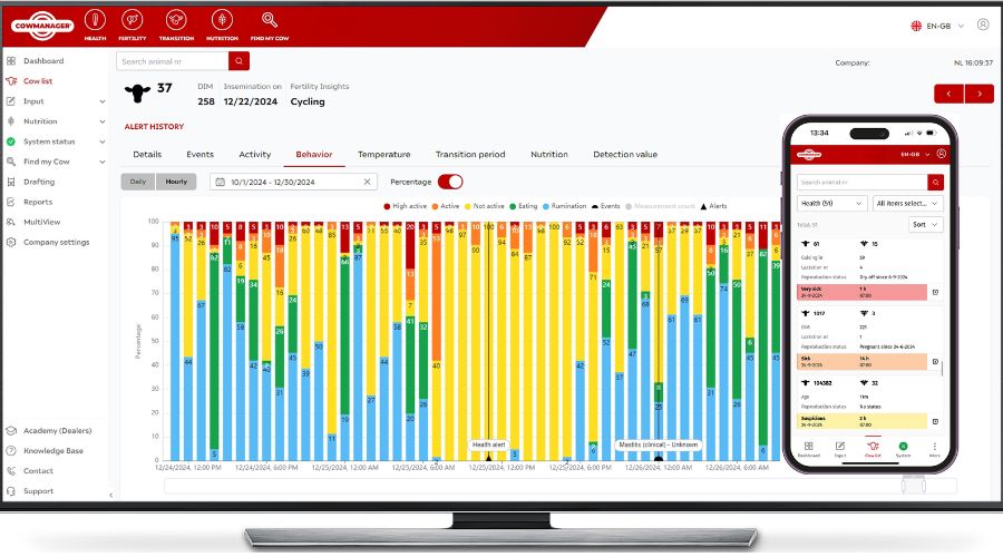 Farmers are expected to produce efficiently, with optimal use of available resources, while maintaining high standards for animal welfare, fertility and productivity. CowManager enables dairy producers to stay in control by turning cow behaviour into actionable insight, the company says.