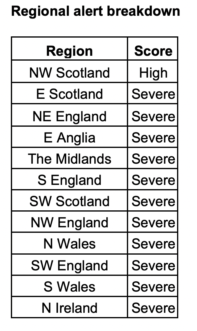 The latest blowfly update, produced by Elanco and Nadis, shows the risk level is now at ‘severe’ in all but one region of the country.