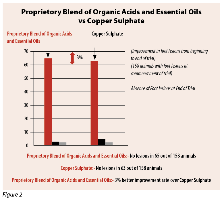 Published studies show that Hoofsure Endurance was more effective than copper or formalin against bacteria, had a quicker onset of action, and was more effective in the presence of organic matter in lab studies (see figures 1 and 2 for summary).