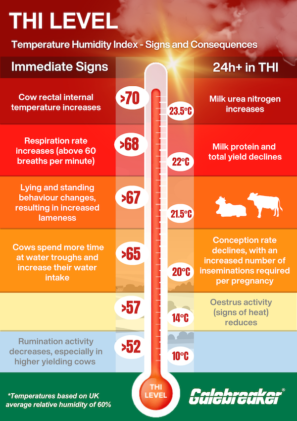 Regularly monitoring THI and prompt action are the best ways to diminish heat stress and protect cows from its worst effects.