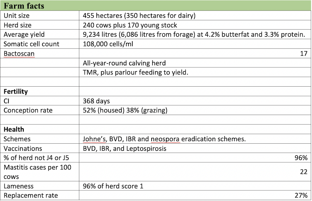 The business also employs four part-time self-employed staff, for relief milking and calf feeding duties, as well as help on the arable side during busy periods.